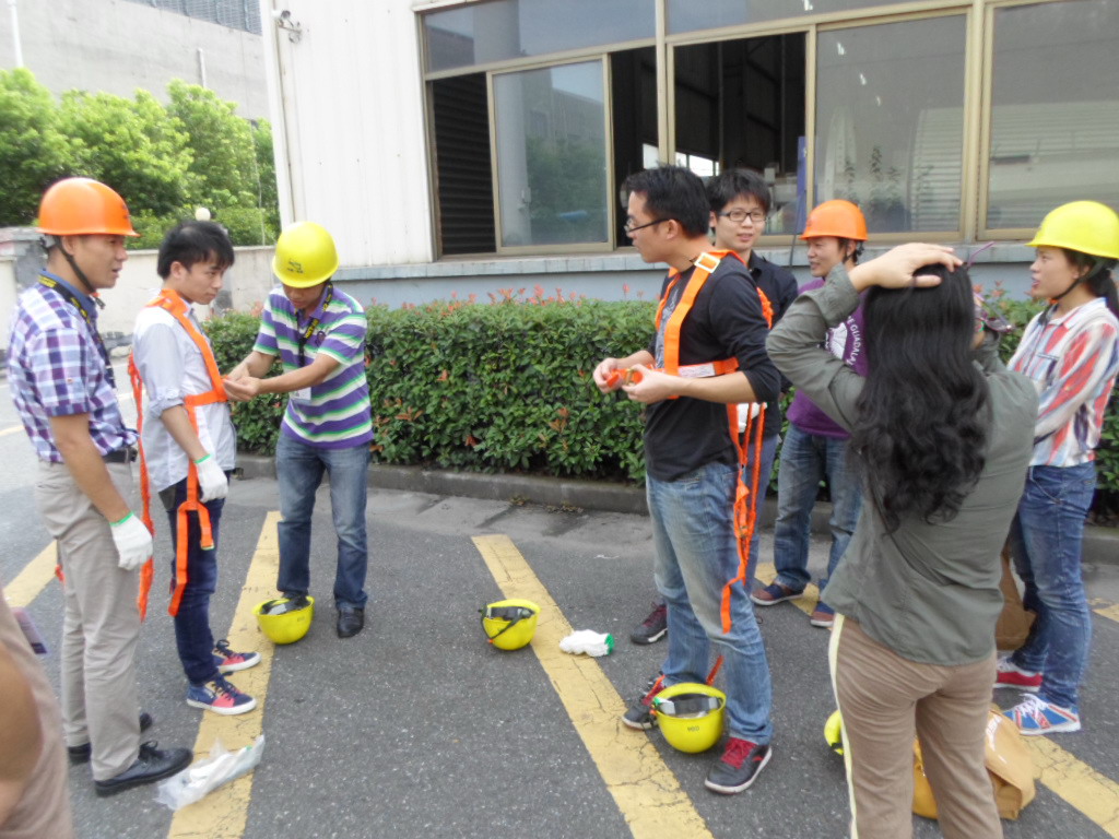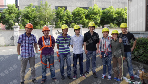 近日电联7名新员工继生产体验、安装现场体验之后,在公司安全主管的带领下来到江东生产基地,开展通信塔攀登体验活动。