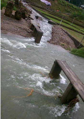 何田乡、高升村道路被冲毁 上村基站桥被水冲断
